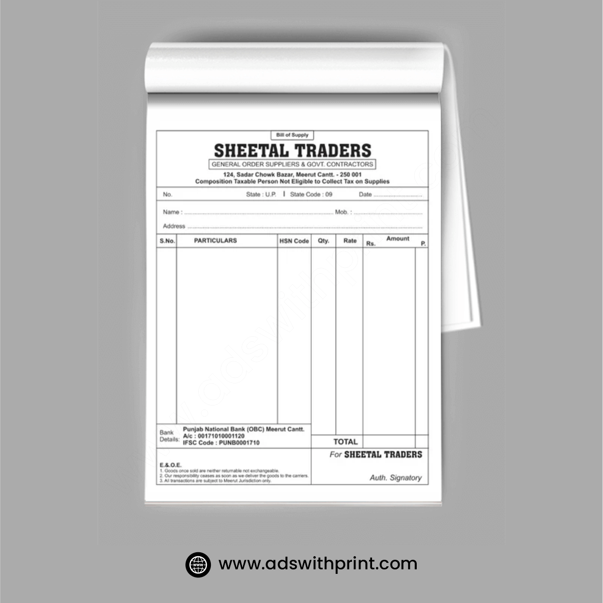 Single Color Bill Book